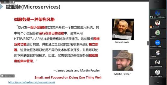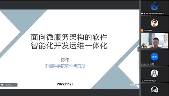 陈伟以“面向微服务架构的软件智能化开发运维一体化”为主题,首先介绍了软件架构、云计算与云应用等研究背景,然后从面向云计算的微服务架构,面向微服务架构的开发运维一体化等方面进行了详细阐述。最后陈博士介绍了团队的研究工作,即知识驱动的微服务智能开发运维一体化,通过在开发运维过程中添加知识,提升微服务的智能化水平。